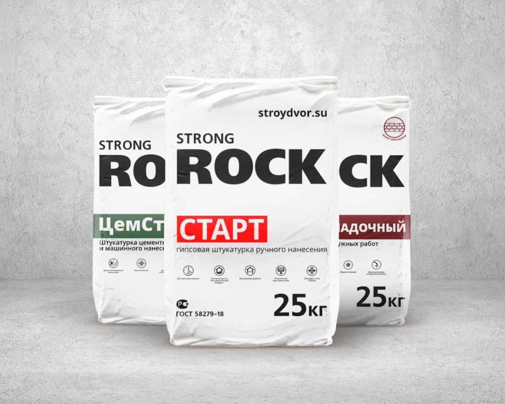 Наша компания успешно развивается на рынке строительных материалов и предлагает широкий ассортимент продукции, включая сухие строительные смеси торговой марки «STRONG ROCK» на гипсовой и цементной основе, мастики, краски, грунтовочные составы, строительный профиль и сетки. В линейку смесей входят штукатурные, шпатлевочные, клеевые и монтажные составы.